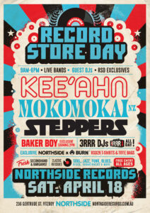 WHAT A PARTY IT WILL BE. Come one come all. FREE and ALL AGES. Lots of records, giveaways, prizes, good times and funk. Performing LIVE will be STEPPERS and then from NEW ZEALAND the incredible hiphop band MOKOMOKAI finally our own angel will see us out, the legendary KEE’AHN. We also get to have a SINGING with the one and only BAKER BOY at 2om.